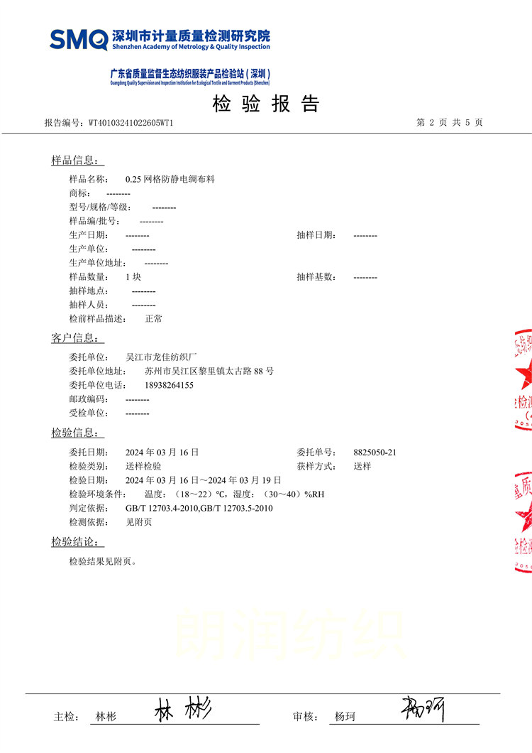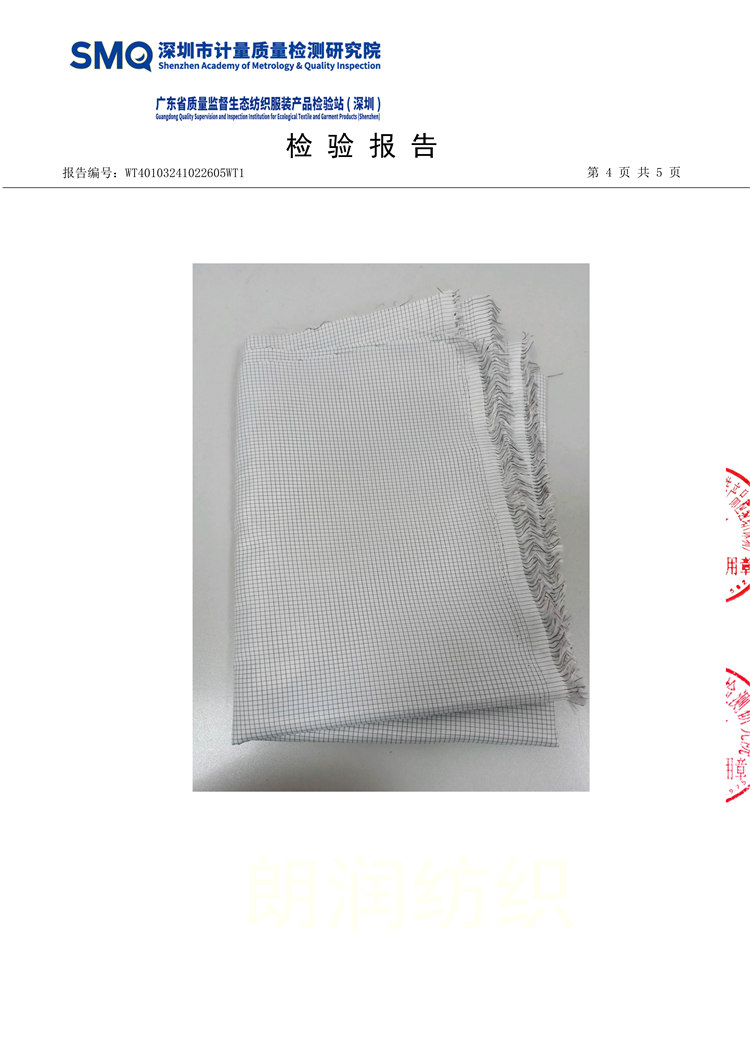 0.25網格防靜(jìng)電(diàn)綢布料-檢驗報(bào)告