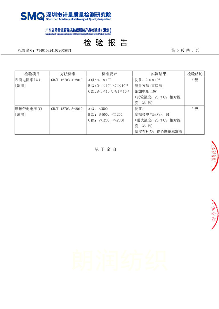 0.25網格防靜(jìng)電(diàn)綢布料-檢驗報(bào)告